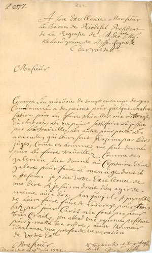 A[ltesse] Serme [Serenissime] Monsieur Le Landgrave de Hesse, Regent de Darmstadt.